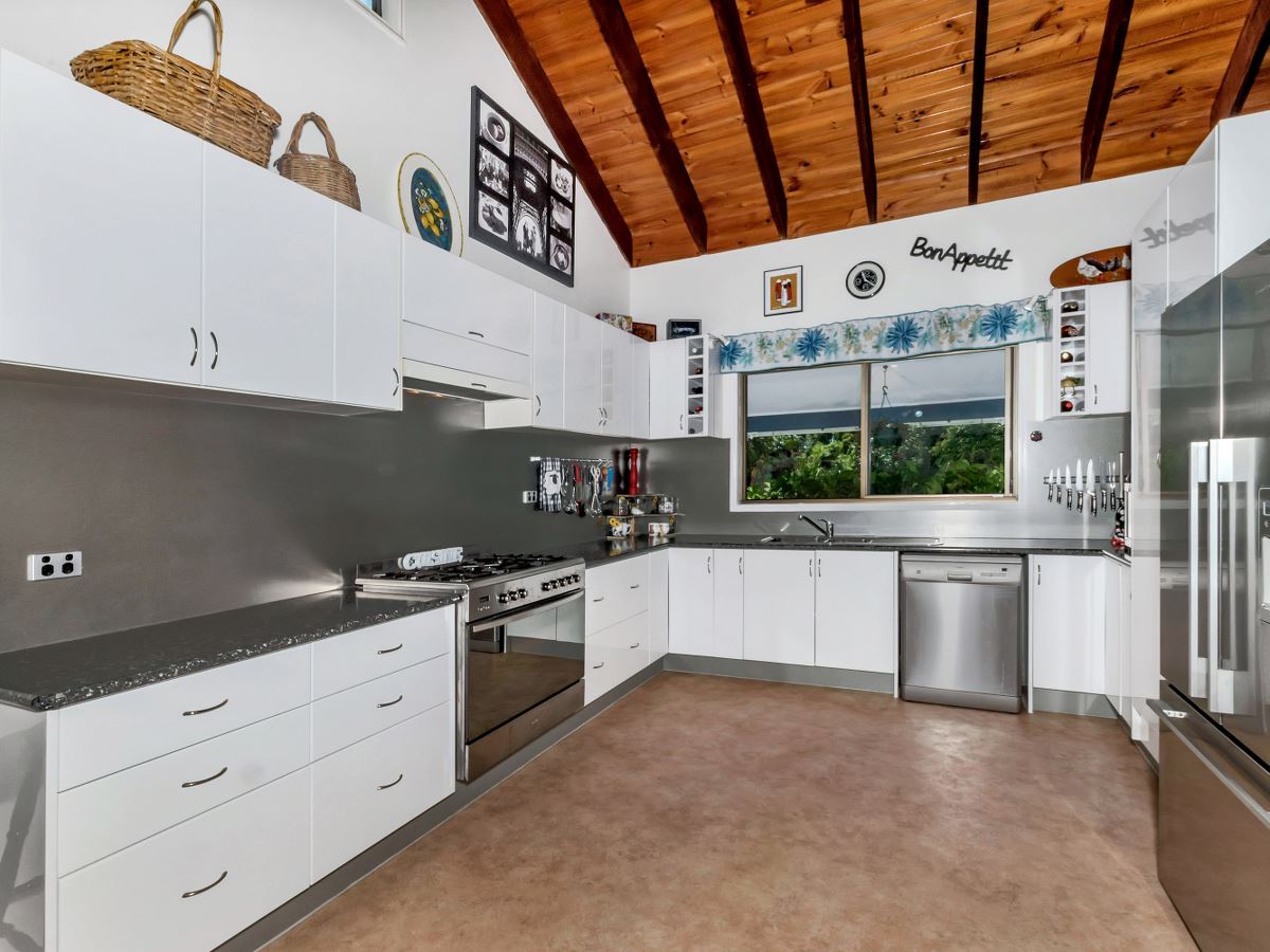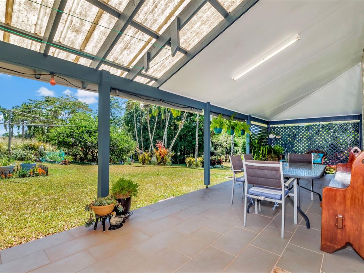 The dining area opens onto the wide wrap round tiled veranda, a must have in the tropics.