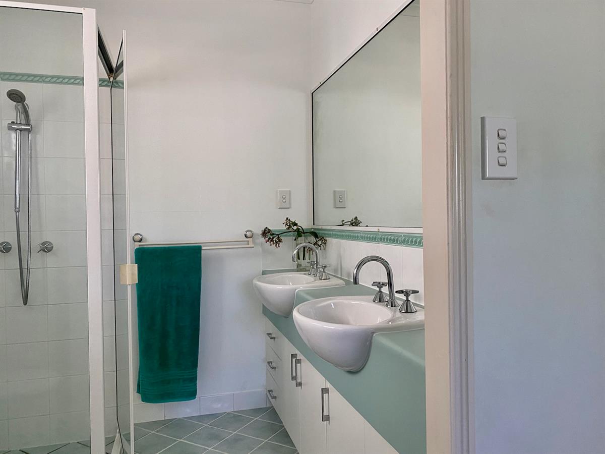 The master bedroom with a decent size ensuite with twin sinks and walk in robe is located at one end of the house and bedrooms two and three, both with built ins, are near the main bathroom. The fourth bedroom is used as a study and is close to the front door.