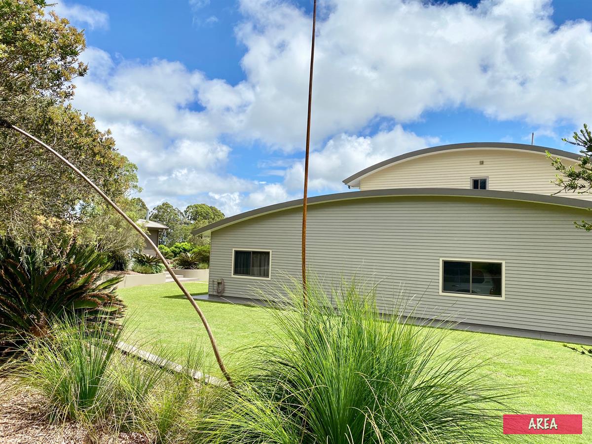 property, hidden behind a reserve and hedge and private from the street with guest parking. The grounds spread over one HA, has treed boundaries and attractive established easy-care native gardens – all very low maintenance.