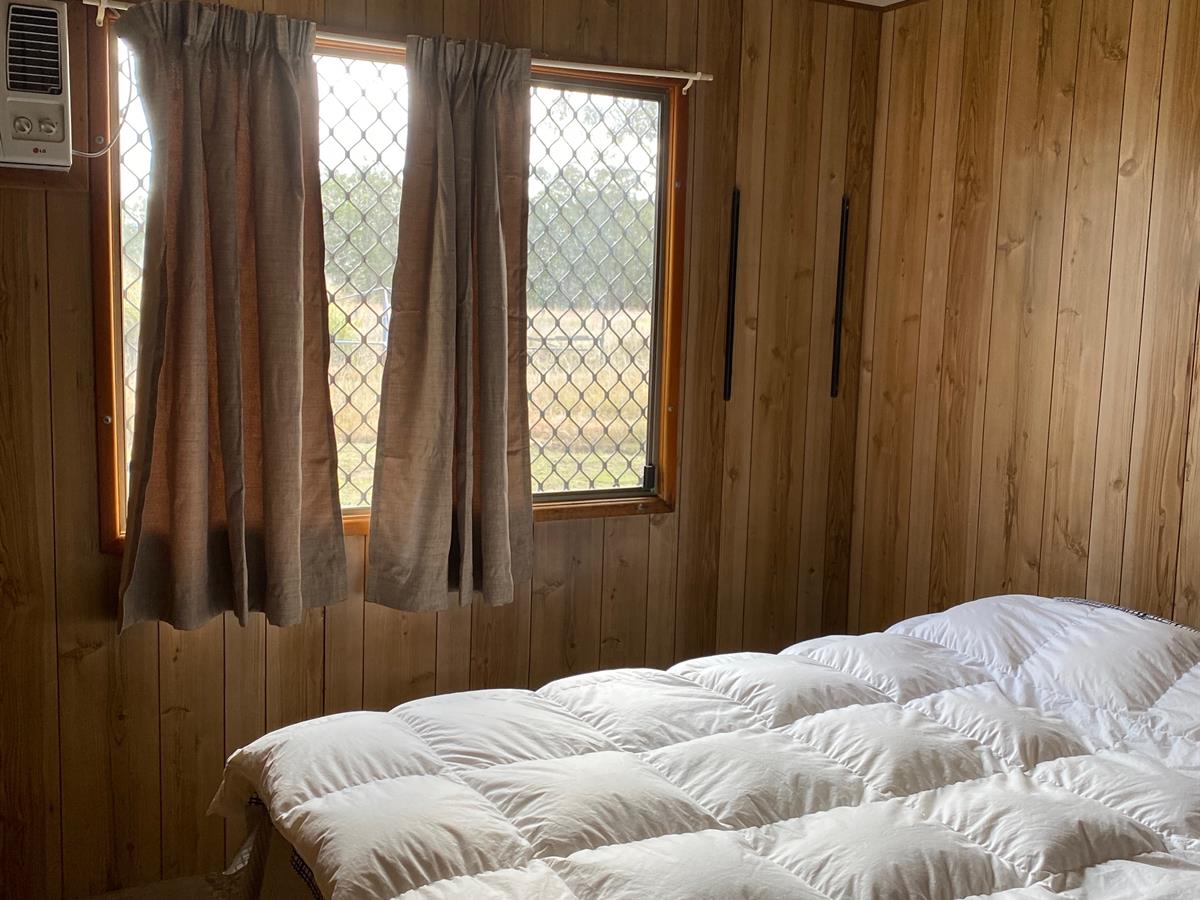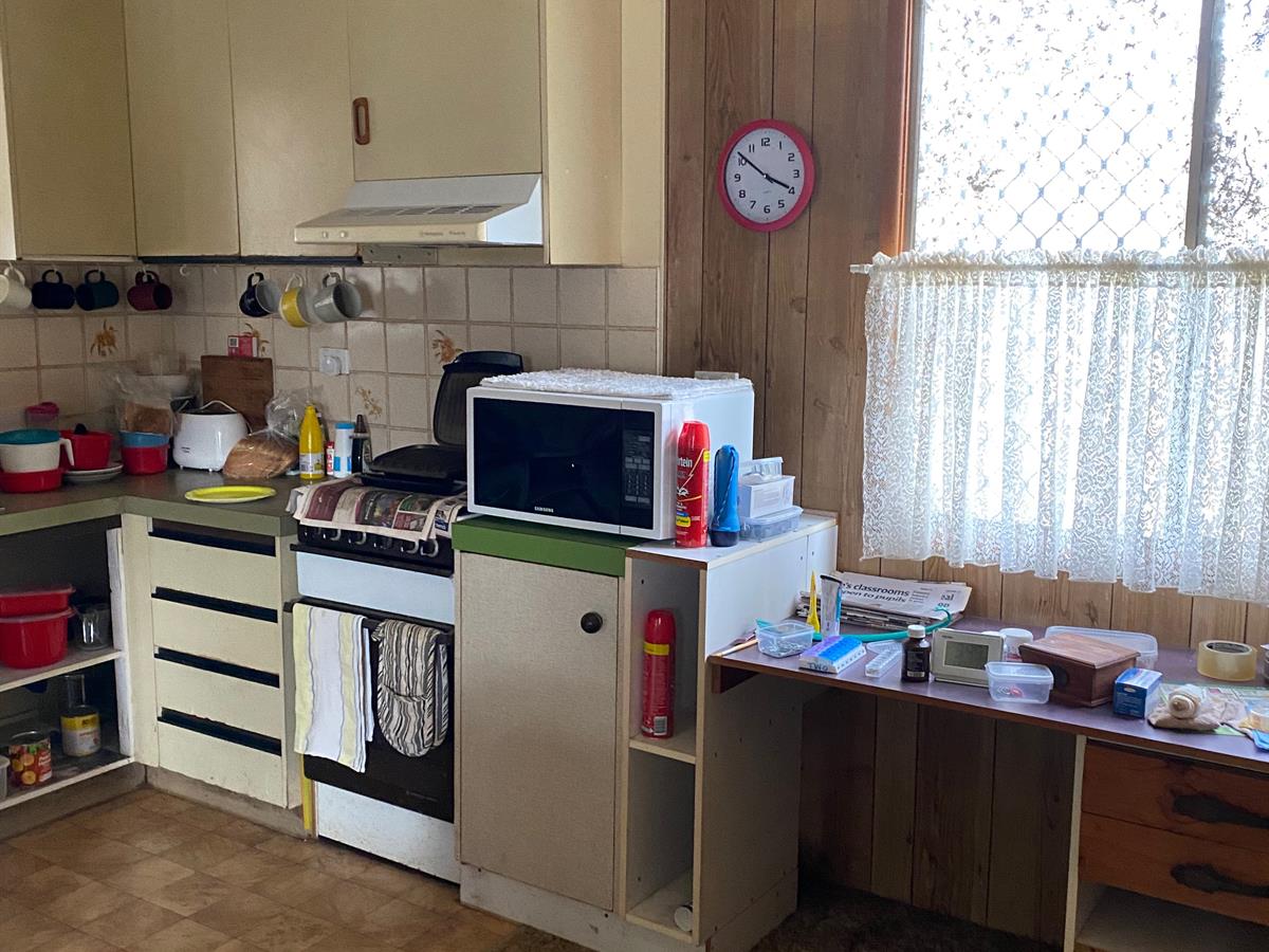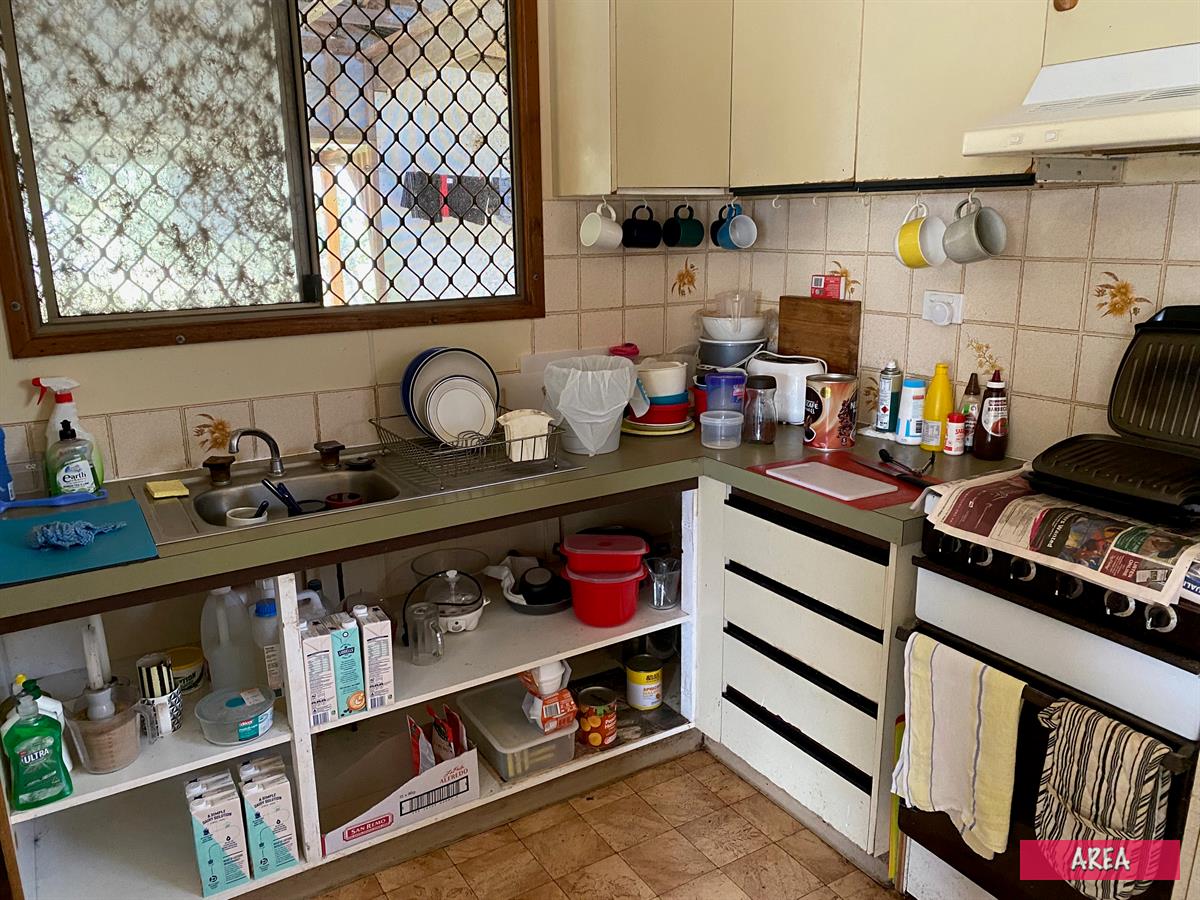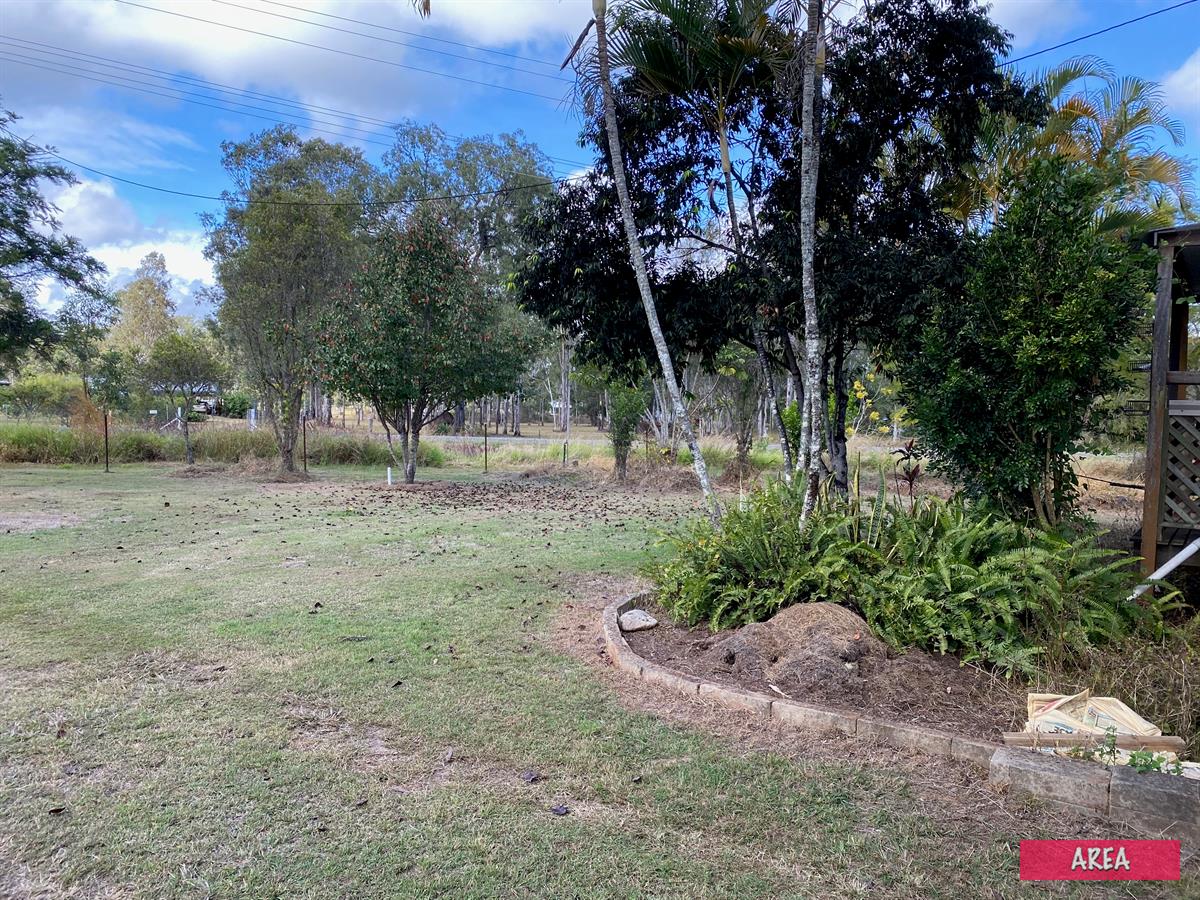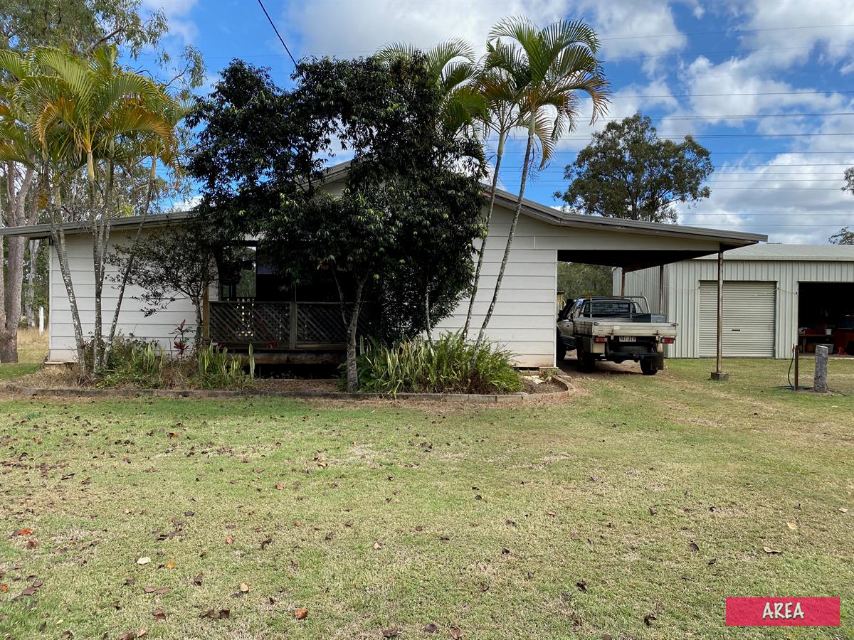 There's a large aluminium clad donga on steel stumps. (2 bedrooms, 1 bathroom, kitchenette, living plus attached large verandah and carport.) Split system air con, new hot water system, security screen all- round, built in shelves in bedrooms. This donga is not a traditional dwelling and does not have the normal approvals a house would have. Some mature trees include jacarandas and Bradbury Pear.