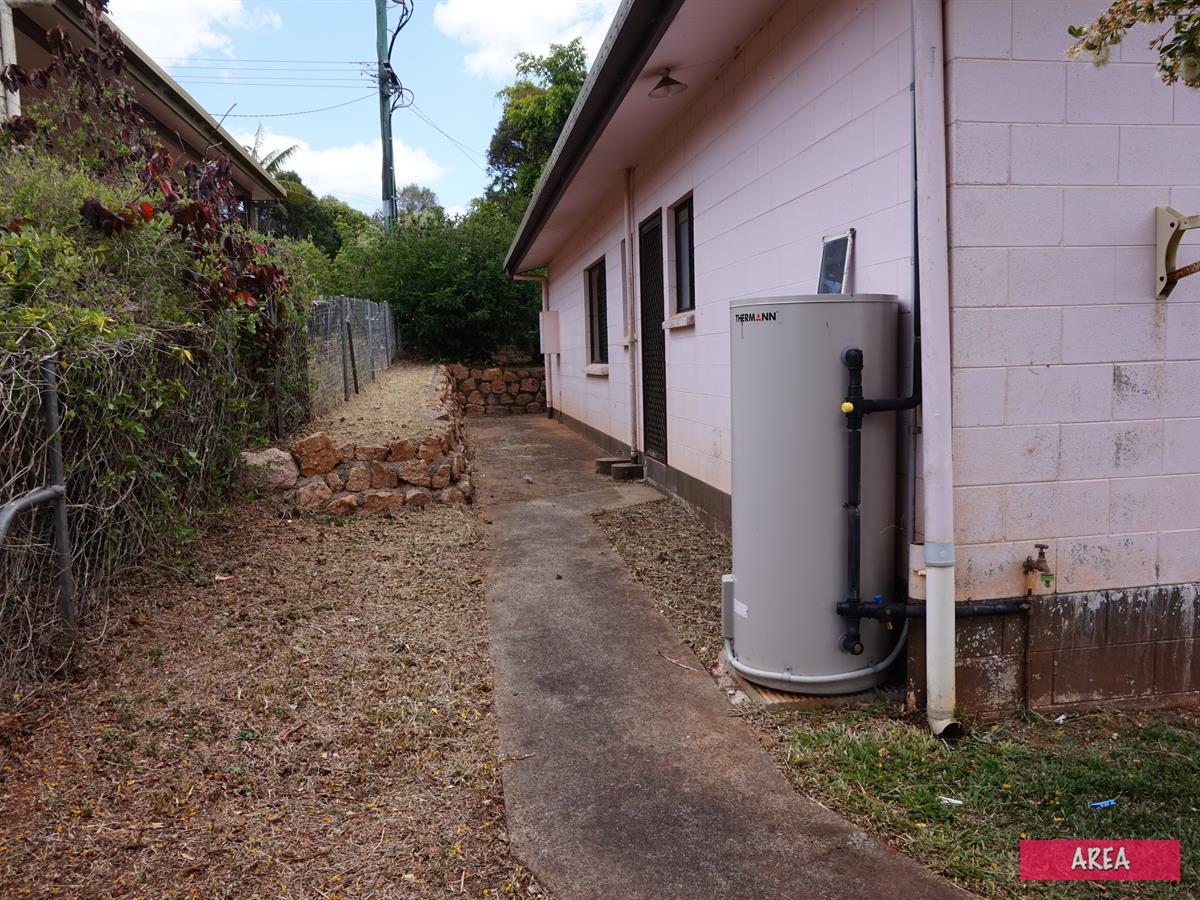 Masonry block construction with a 4 car semi enclosed carport in a great location, handy to schools and town. 3 bedrooms with an open plan lounge dining and kitchen all on a 800m2 fenced block. Big back yard, garden free with the exception of a few trees.
