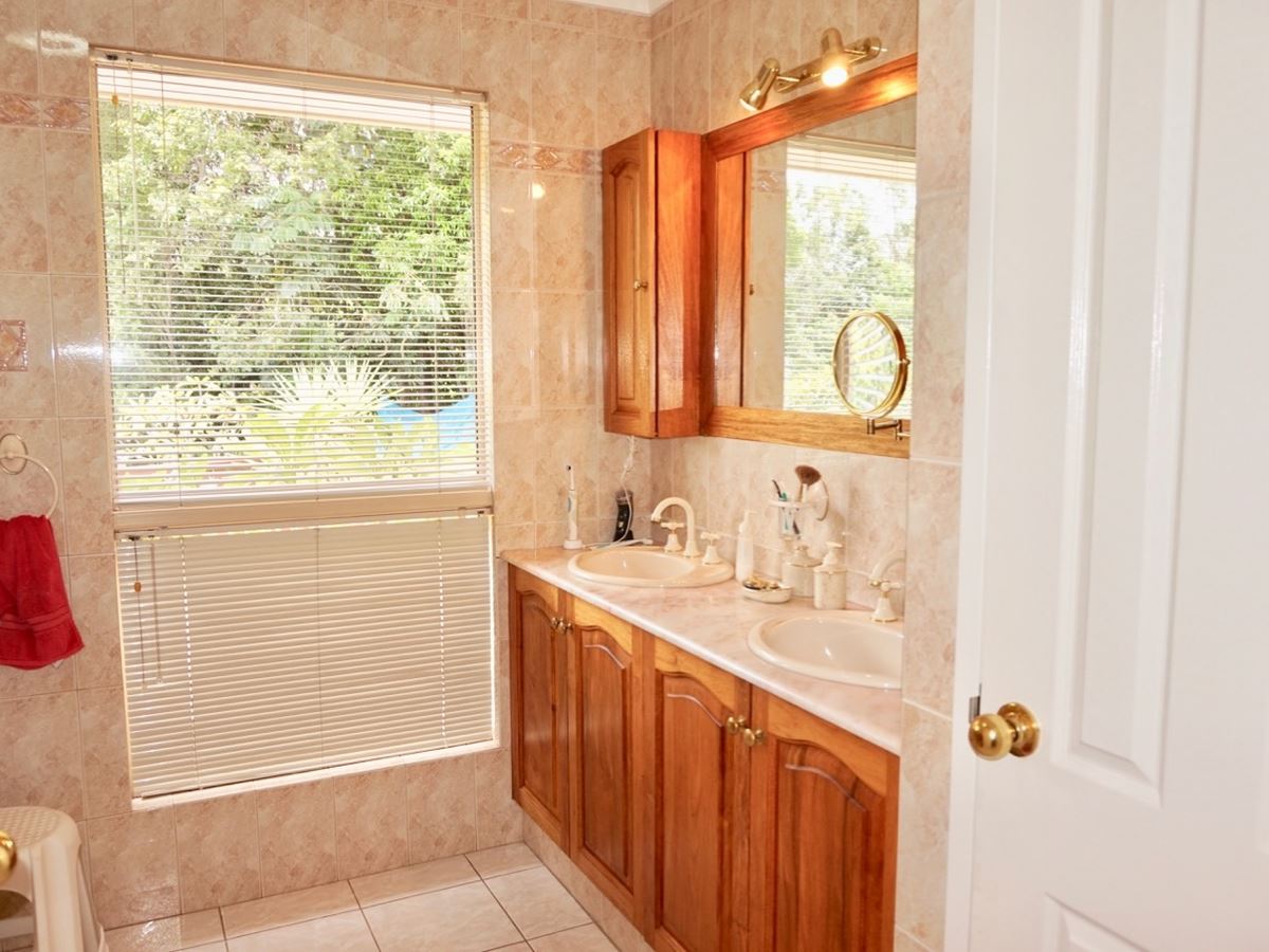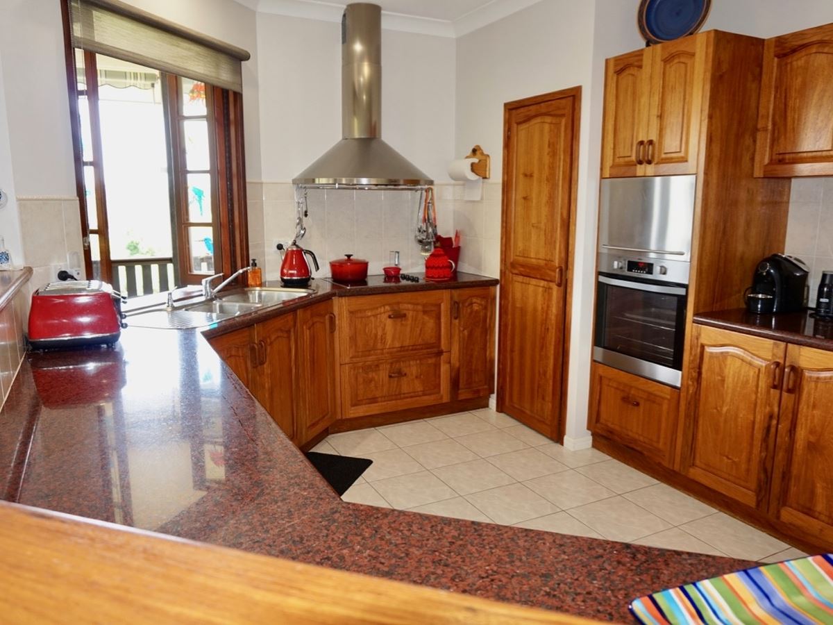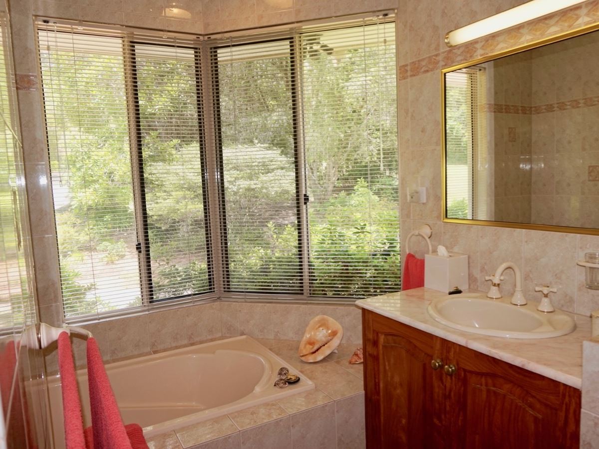 The master bedroom with full size ensuite bathroom opens to the verandah and the lake view and is separate to the other bedrooms and main bathroom at the opposite end of the house. The spacious room sizes will impress you, both bathrooms have marble bench tops and the kitchen has granite. There’s also a family room, study, formal entry, double lock up garage, workshop separate to the garage and storeroom and garden shed under house. Solar power, privacy blinds, excess storage and many impressive timber features.